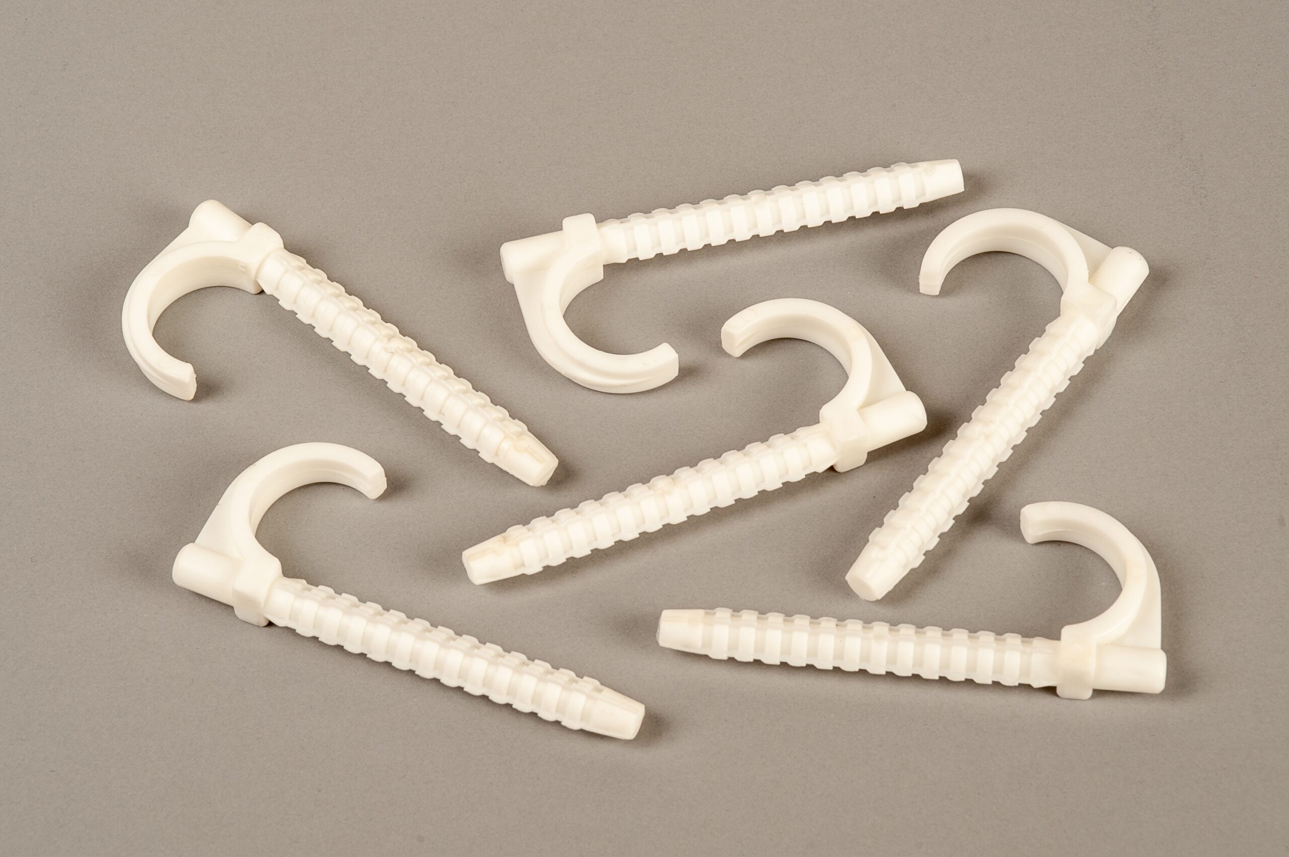 Hak podwójny może przytwierdzić dwie rurki naraz – na przykład na miejscu styku. Produkt posiada rowki w dolnej części, które sprawiają, że zaczep można umieścić w styropianie ręcznie, bez stosowania narzędzi. Dzięki temu montaż przebiega znacznie szybciej. Hak scala elementy instalacji przed wykonaniem wylewki. Hak został wykonany z PP ( Polipropylen), dzięki czemu jest mocny i elastyczny, co sprawia, że został dobrze przygotowany do zalania jastrychem.