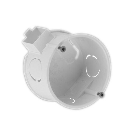 Puszka podtynkowa, łączona, płytka bez wkrętów. Dane techniczne: średnica 60 mm, głębokość 42 mm, kolor biały, materiał – Polipropylen Puszka elektryczna podtynkowa 60 x 60 x 42 łączona płytka